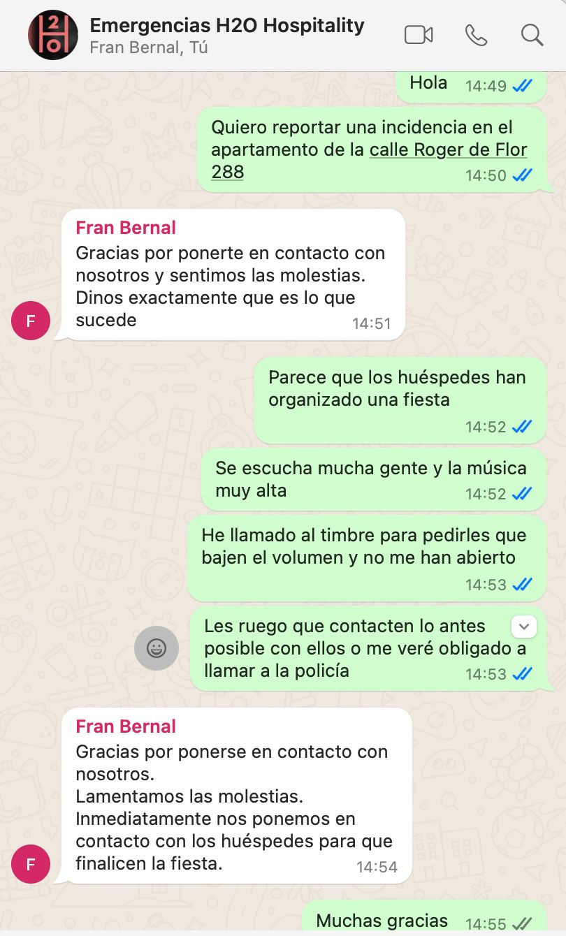 Este sistema inteligente está disponible las 24 horas del día, los 7 días de la semana, y permite a los huéspedes informar de cualquier incidencia al instante, recibiendo orientación o soluciones inmediatas sin necesidad de esperas. Ya se trate de una pregunta sobre el apartamento, un problema técnico o una solicitud urgente, el chatbot garantiza que cada situación se gestione de forma rápida y eficaz.